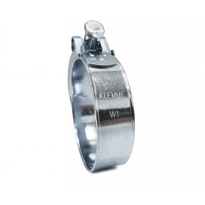 Obejma zaciskowa GBS z zamknięciem przegubowym wykonana z taśmy stalowej W1 w całości zabezpieczona jednolitą warstwą cynku. Specjalny profil taśmy zapobiega uszkodzeniom powierzchni mocowanego przewodu przy napinaniu i dalszej pracy. Obejmy szczególnie przydatne do mocowania przewodów elastycznych, z twardej gumy, zbrojonych tworzywem lub stalą, pracujących w instalacjach próżniowych i wysokociśnieniowych.