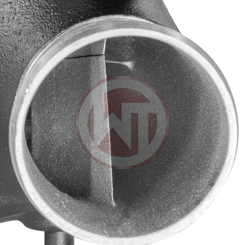 The high Perf. intercooler has the following core dimension (515mm x 367 [274] mm x 95mm) and thus offers a 120% larger cooling surface and 142% more charge air volume compared to the original intercooler. The newly developed Comp. core granted the adjacent components, example watercooler, sufficient airflow and is also very light. The endtanks of the intercooler are made ??of cast aluminum and have been optimized under flow analyzes in the CAD system. z the help of additional air baffles, inside inlet, providing a uniform filling of the intercooler. The result is excellent cooling properties z minimum back pressure. So this is just the right thing racing. The intercooler and the original crossmember form a stable unit and weighs only 11.2 kg. It is mounted to the original mounting points and is easy to perform (1:1 exchange). Optimum cooling of the charged air z a clear increase in Perf.! On both sides the connection diameter is 68mm.