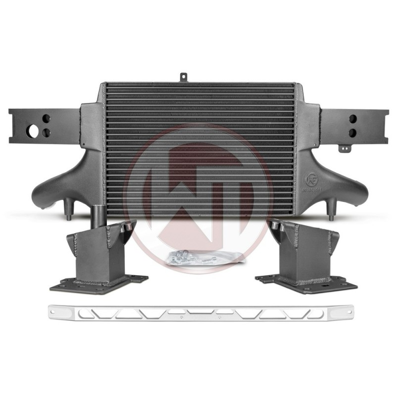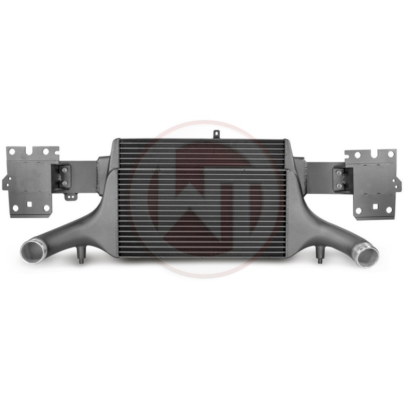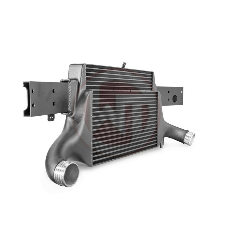 The high Perf. intercooler has the following core dimension (515mm x 367mm x 95mm = 16,5L/14,45Inch x 3,74Inch = 1006,9Inch³) and this offers a 84% larger cooling surface and 101% more charge air volume compared to the original intercooler. Ourers have increased the intercooler core size and efficiency, as well as improved the end tank design to remove any OEM bottlenecks, resulting in increased flow rating and charge cooling properties. This Audi RS3 intercooler uses our award winning WAGNERTUNING Comp. Intercooler Core, which is made specifically this application. Constructed of the highest quality TUBE and FIN intercooler cores z inside turbulators combined z cast aluminum endtanks optimized by CFD best possible internal airflow. z the help of additional air guides, inside inlet, a uniform filling of the intercooler is provided. The result is excellent cooling properties z minimum pressure drop. So this is just the right thing racing. The intercooler and the crossmember form a stable unit and weighs only 14,3 kg. It is mounted to the original mounting points and is easy to perform (1:1 exchange). Optimum cooling of the charged air z a clear increase in Perf.! 68mm (2,67Inch) in- and outlets.