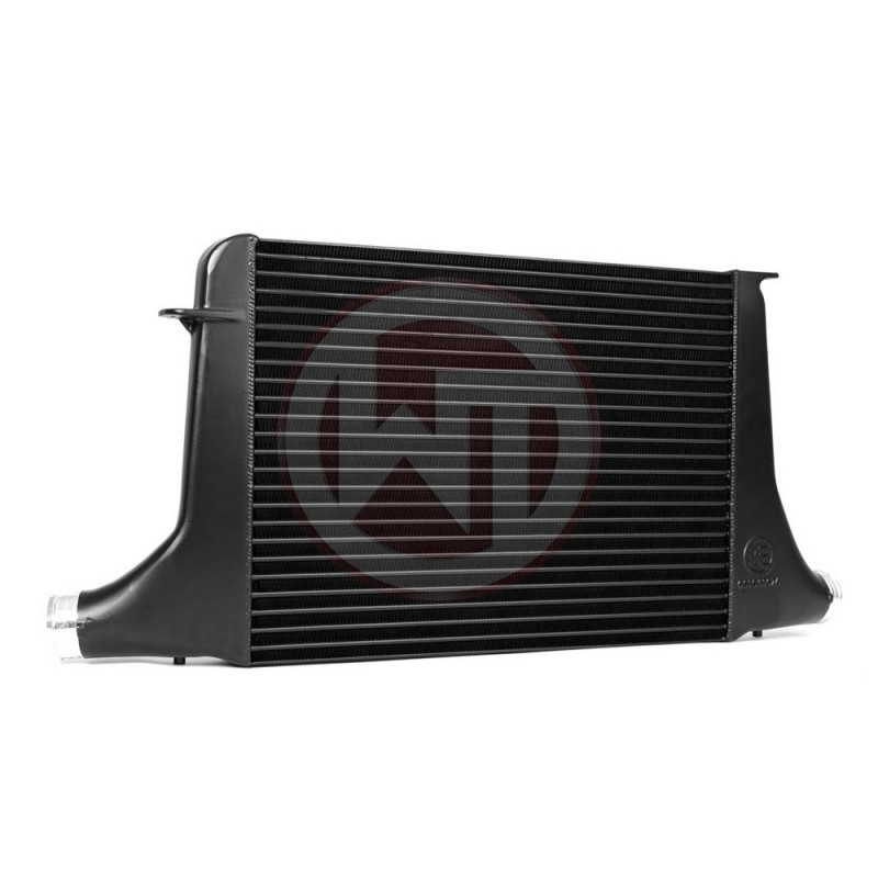 The Comp. Intercooler has the following core size (580mm x 437mm x 56mm= 14.193cm³) , providing a 226% larger frontal area and 246% more volume compared to the stock mounted intercooler. Ourers have increased the intercooler core size and efficiency, as well as improving the endtank design to remove any OEM bottlenecks, resulting in increased flow rating and charge cooling properties. This intercooler uses our award winning WAGNERTUNING Comp. intercooler core which is made specifically this application. Constructed of the highest quality Tube and Fin intercooler cores z inside turbulators combined z cast aluminum endtanks optimized by CFD best possible internal airflow. z the help of additional air guides, inside inlet, an uniform filling of the intercooler is provided. The result is excellent cooling properties and a lot less pressure drop then the stock intercooler. Despite of it´s size the weight of the complete intercooler is only 7,6kg. The inlets and outlets of the intercooler have been increased to Ø 65mm, so this comes z reinforced silicone hoses. This Intercooler is the best choice when it comes to Perf. gains and low intake temperatures and also the right thing racing. All of our intercooler use an anti corrosion protective powłoka z perfect thermal heat dissapating character. Optimal cooling z clearly more power. is ready installation, 100% perfect fit. Fitment is easy, replacing the OEM intercooler. All of our products undergo rigorous quality control.