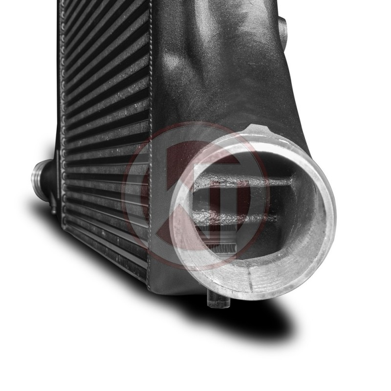 The Comp. Intercooler has the following core dimensions (550mm x 445mm x 70mm = 17.130cm³). The high Perf. intercooler core provides a 134% larger frontal area and 105% more volume compared to the stock mounted intercooler. Ourers have increased the intercooler core size and efficiency, as well as improved the endtank design to remove any OEM bottlenecks, resulting in increased flow rating and charge cooling properties. We use our award winning WAGNERTUNING Comp. Intercooler Core which is made specifically this application. Constructed of the highest quality Tube Fin intercooler cores z inside turbulators combined z cast aluminum endtanks optimized by CFD best possible internal airflow. The connection diameters are Ø62mm at the intercooler inlet and Ø67mm at the intercooler outlet. The result is excellent cooling properties and a lot less pressure drop then the stock intercooler. Despite of it´s size the weight of the complete intercooler is only 9,5kg. This Intercooler is the best choice when it comes to Perf. gains and low intake temperatures and also the right thing racing. All of our intercooler use an anti corrosion protective powłoka z perfect thermal heat dissapating character. Optimal cooling z clearly more power. is ready installation, 100% plug and play. All of our products undergo rigorous quality control.