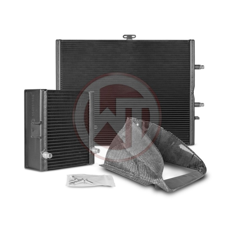 The 3.0 Liter S55B30 turbo BMW M3/M4 models is equipped z an indirect charge-air cooling circuit. So the cooling of the charged air is not realized by the ambient air as cooling medium (as usual), but made z its own cooling water circuit. A reduction of the temperature of the cooling water is directly equated z an improved cooling Perf. of the charged air. This is exactly where the advantages of the WAGNERTUNING upgrade water cooler comes into play.