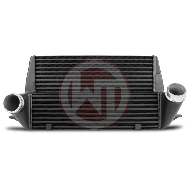 The BMW Comp. Intercooler EVO III has the following core dimensions (510mm x 303mm x 180mm / stepped, 20,65L)(20Inch x 11,9Inch x 7,09Inch / stepped, 1260,14Inch³) . The high Perf. intercooler core provides a 162% larger frontal area and 182% more volume compared to the stock mounted intercooler. Ourers have increased the intercooler core size and efficiency, as well as improved the endtank design to remove any OEM bottlenecks, resulting in increased flow rating and charge cooling properties. We use our award winning WAGNERTUNING Comp. Intercooler Core which is made specifically this application. Constructed of the highest quality Tube Fin intercooler cores z inside turbulators combined z cast aluminum endtanks optimized by CFD best possible internal airflow. The stock click connections have been eleminated and increased to a connection diameter of Ø70mm/2,756Inch ( In- and Outlet, so this comes z reinforced silicone hoses. The result is excellent cooling properties and a lot less pressure drop then the stock intercooler. Despite of it´s size the weight of the complete intercooler is only 13,2kg. This Intercooler is the best choice when it comes to Perf. gains and low intake temperatures and also the right thing racing. All of our intercooler use an anti corrosion protective powłoka z perfect thermal heat dissapating character. Optimal cooling z clearly more power. is ready installation, 100% perfect fit. Easy installation, only some little adjustments at the plastic cooler support are necessary. All of our products undergo rigorous quality control.
